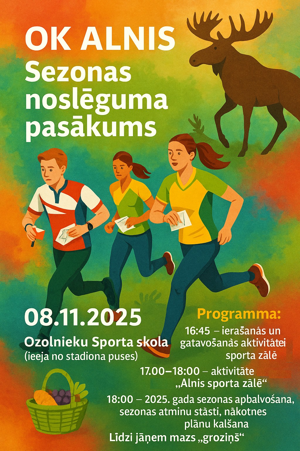 8.novembrī Ozolnieku sporta skolā norisināsies OK Alnis sezonas noslēguma pasākums. Dreskods- jo raibāk, jo labāk!. Ok Alnis 2025 noslēguma pasākums
